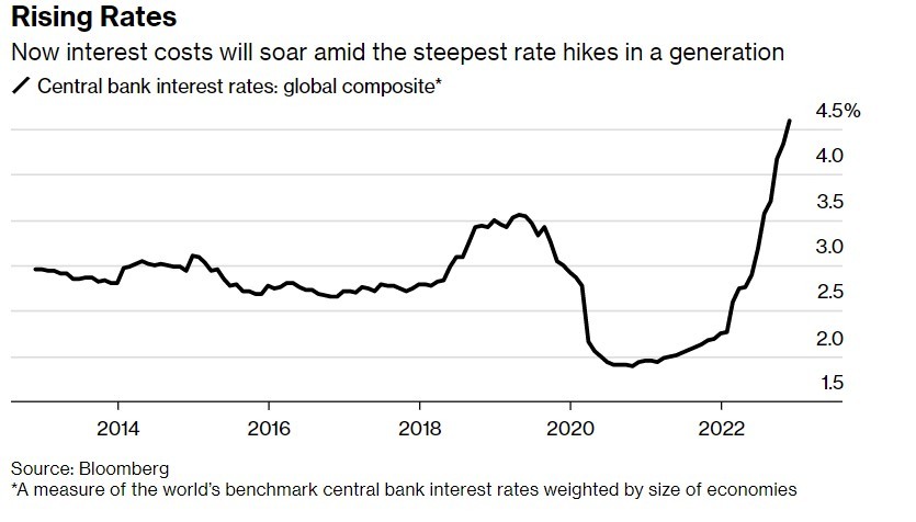 目前,全球央行已开始大幅加息,以冷却市场需求和加大力度遏制数十年来最高的通胀率。国际货币基金组织预计,到2023年年底,全球通货膨胀率将降至4.7%,略低于目前水平的一半,但仍然远高于多数央行的目标值。