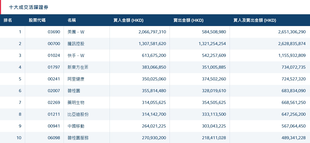 港股通(深)活跃成交股