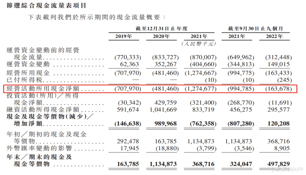 智通财经APP注意到,截至2019年、2020年及2021年12月31日止年度及截至2022年9月30日止九个月,多点数智经营活动所用现金净额分别为7.08亿元、4.81亿元、12.75亿元及1.64亿元。因此,公司长期需要融资活动“输血”,这也是公司寻求上市融资的主要原因之一。
