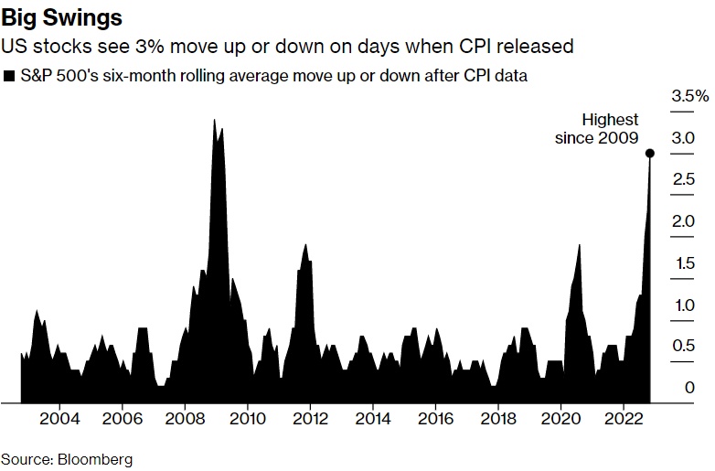 市场剧烈波动——在CPI公布的当日,标普500指数上下波动幅度达3%
