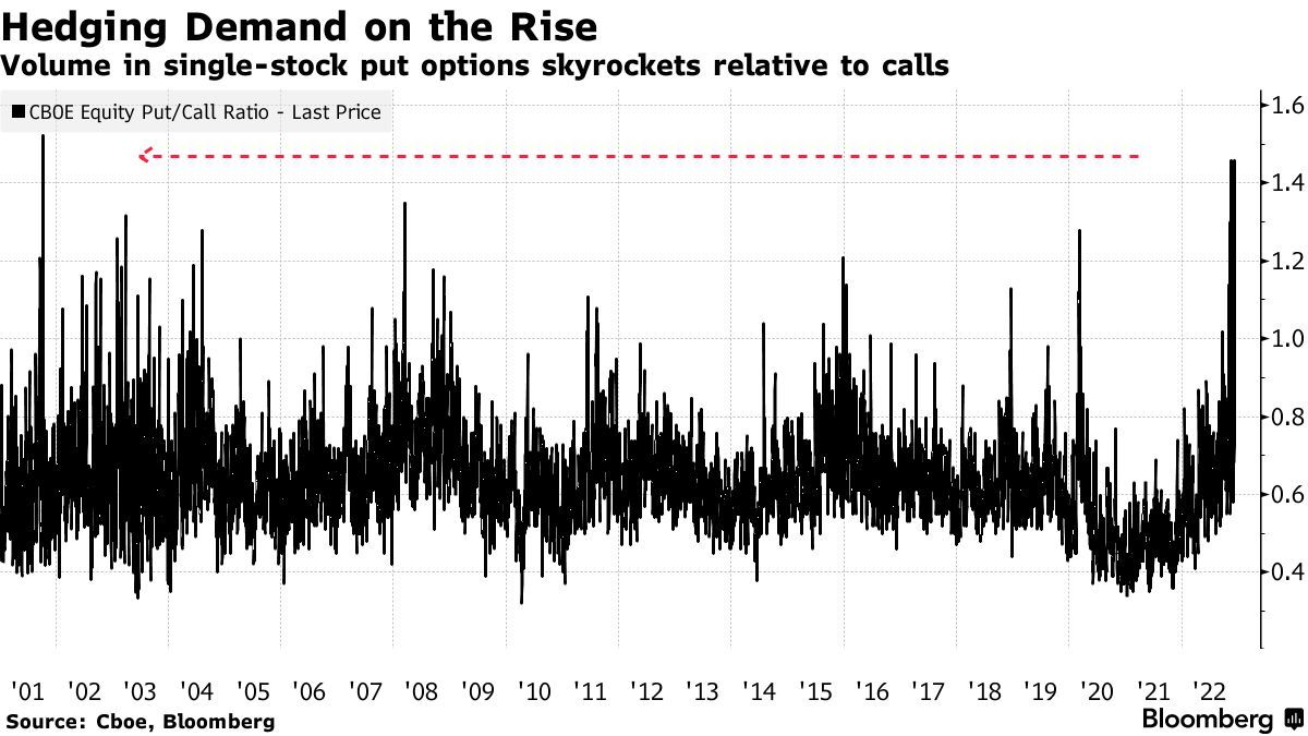 对冲需求上升! 单只股票看跌期权的交易量相对于看涨期权飙升