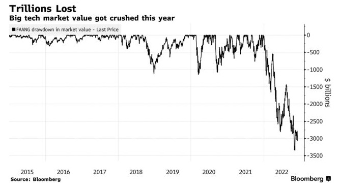 对于一些投资者而言,今年美股市场上少数几家高估值科技巨头的暴跌恐怕不仅仅是一次熊市,更是一个时代的终结。
