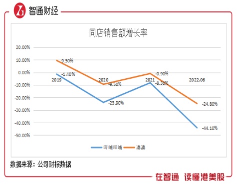 呷哺呷哺赖以信任的凑凑品牌,试图通过该品牌打造的增长曲线,支撑业绩持续增长,业务收入表现还算理想,但主要靠门店扩张收入,而实际单店不乐观,门店销售额持续下降,这或影响到未来的增长预期。且从利润率来看,凑凑品牌一直处于下降趋势,2017-2021年经营利润率下降了16.9个百分点,今年上半年亏损率7.2%。