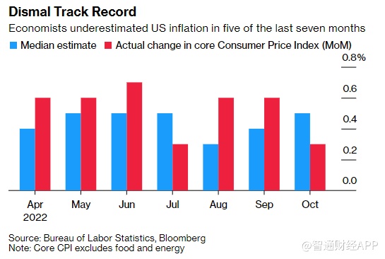 经济学家在过去七个月中有五个月低估了美国的通胀