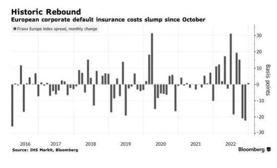 欧洲公司债的风险溢价已跌至数月来的最低水平,此前美国11月通胀数据走软,引发了市场对美联储加息将会变得不那么激进的希望,并刺激各资产出现大规模反弹。数据显示,上个月欧洲蓝筹股公司的违约保护成本创下2016年初以来的最大月度降幅。