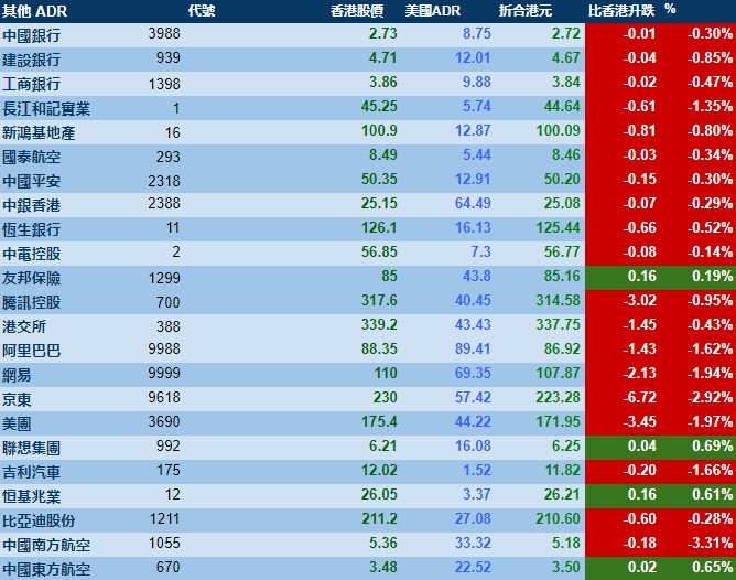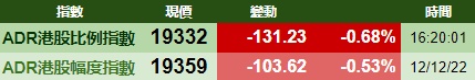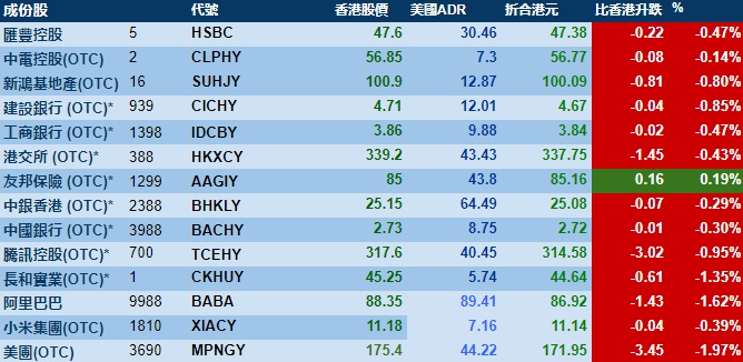 智通财经APP获悉,周一美股三大指数集体收涨,港股ADR指数下跌,按比例计算,收报19332点,较香港收市跌131.23点或0.68%。