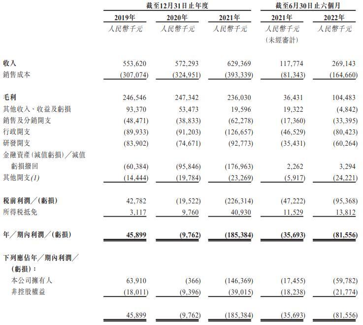财务方面,2019年、2020年、2021年以及截至2022年6月30日止六个月,公司实现收入约5.54亿元(人民币,下同)、5.72亿元、6.29亿元及2.69亿元。