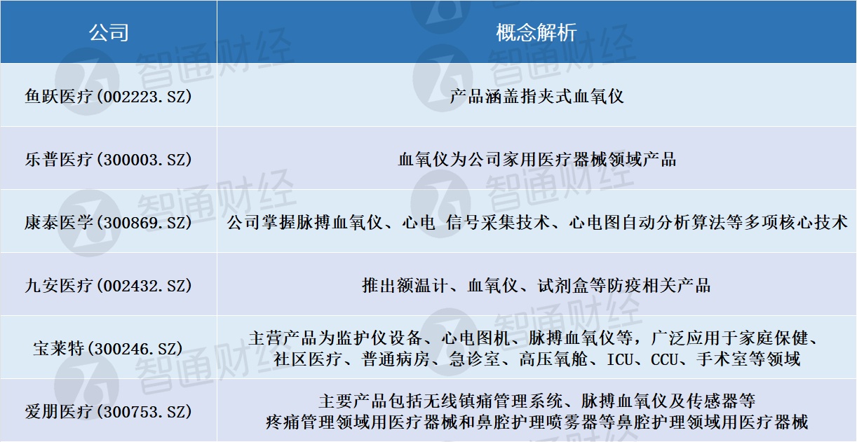 鱼跃医疗(002223.SZ):提供家用医疗器械、医用临床器械和互联网医疗服务为主要业务。公司产品包含指夹式血氧仪。