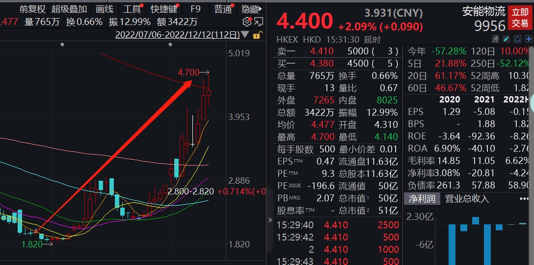 由于防疫政策的放宽,明年经济复苏已是大概率事件,当前的资本市场也开始调仓换股,布局“复苏线”,资金逐渐向消费、旅游、出行、物流等板块聚集。其中,零担快运领域的龙头企业安能物流获资金青睐,股价表现尤为突出。