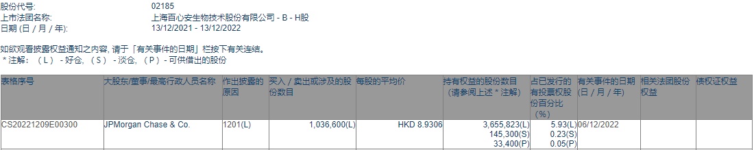 智通财经APP获悉,香港联交所最新资料显示,12月6日,小摩减持百心安-B(02185)103.66万股,每股作价8.9306港元,总金额约为925.75万港元。减持后最新持股数目约为365.58万股,最新持股比例为5.93%。