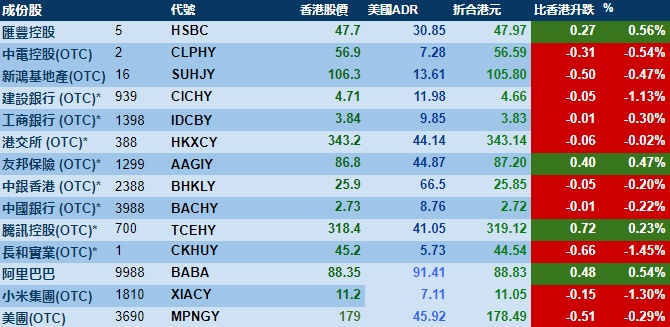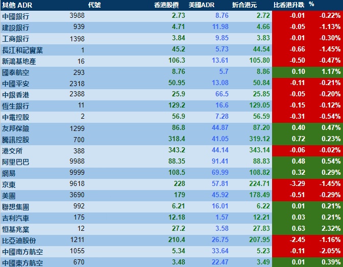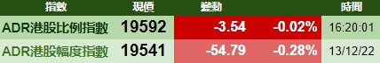 智通财经APP获悉,周二美股三大指数集体收涨,港股ADR指数下跌,按比例计算,收报19592点,较香港收市跌3.54点或0.02%。
