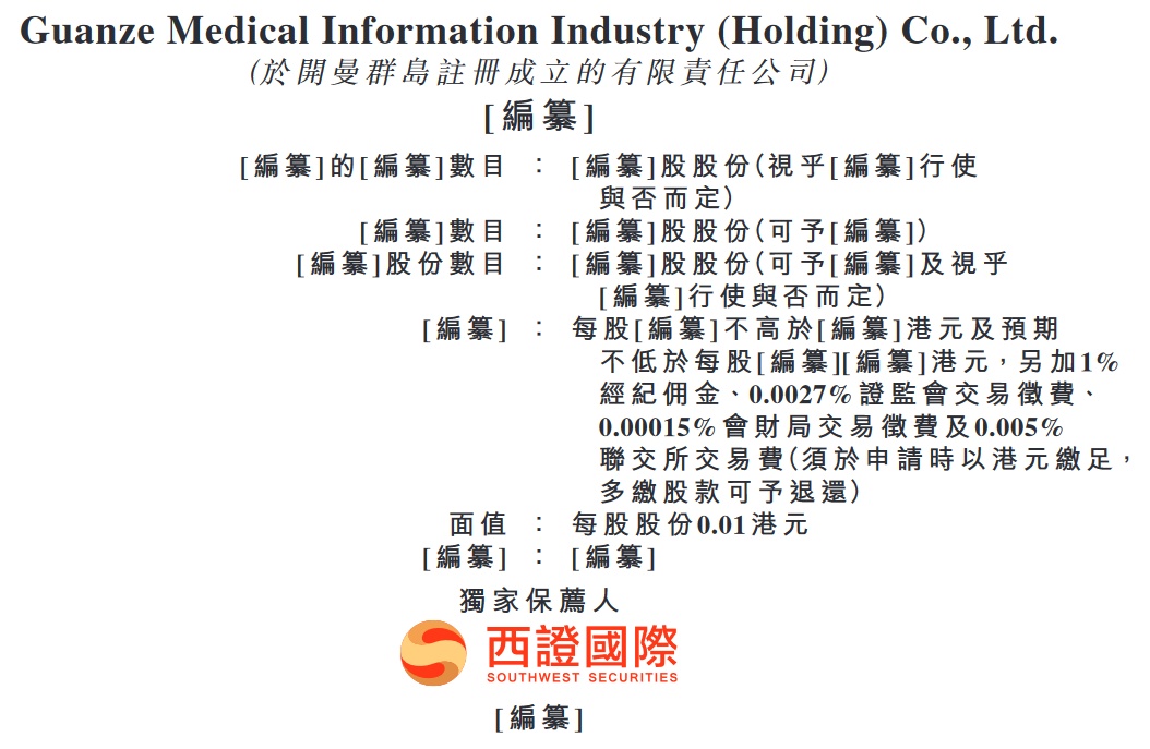 智通财经APP获悉,据港交所12月13日披露,冠泽医疗信息产业(控股)有限公司(Guanze Medical Information Industry (Holding) Co., Ltd)通过港交所上市聆讯,西证国际为其独家保荐人。