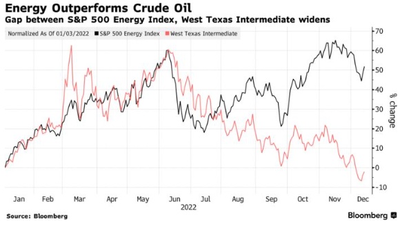 其他分析师则指出,价格高涨的能源股与原油价格变化之间的价差是该行业股将陷入困境的证据。