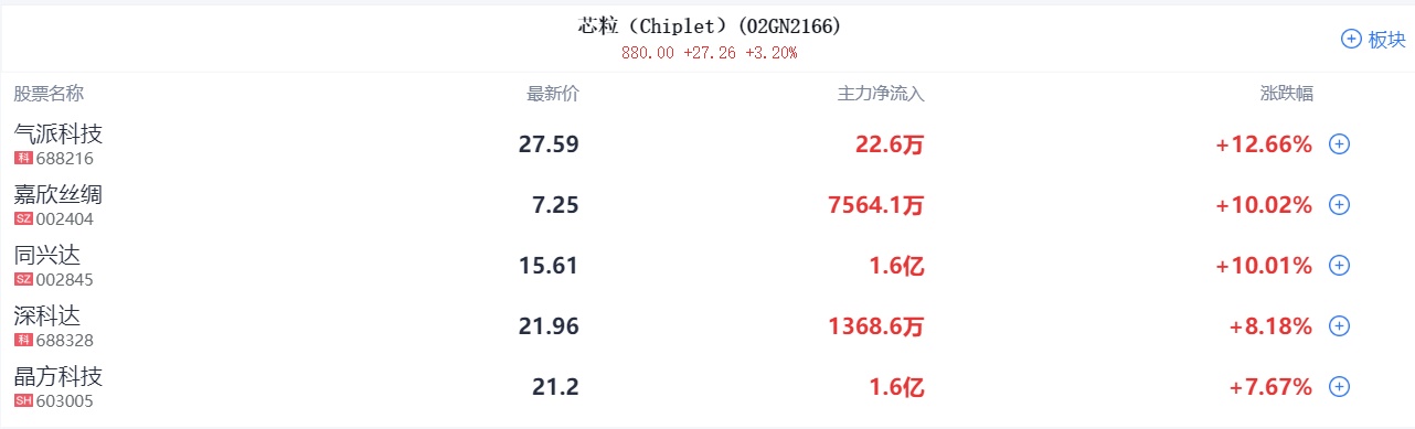半导体芯片股掀涨停潮,Chiplet方向领涨,易天股份、敏芯股份20CM涨停,大港股份、国星光电、同兴达、文一科技等十余股封板。