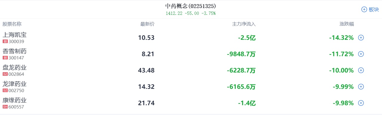 医药股全线走低,中药、熊去氧胆酸概念领跌,康缘药业跌停,4天翻倍牛股宣泰医药一度重挫12%,上海凯宝、共同药业、金石亚药、亨迪药业、千红制药、海辰药业、润都股份、精华制药等股大幅跟跌。