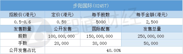智通财经APP获悉,12月14日,步阳国际(02457)配售结束。配售招股价0.5-0.6港元,最终定价0.5港元,每手2500港元。