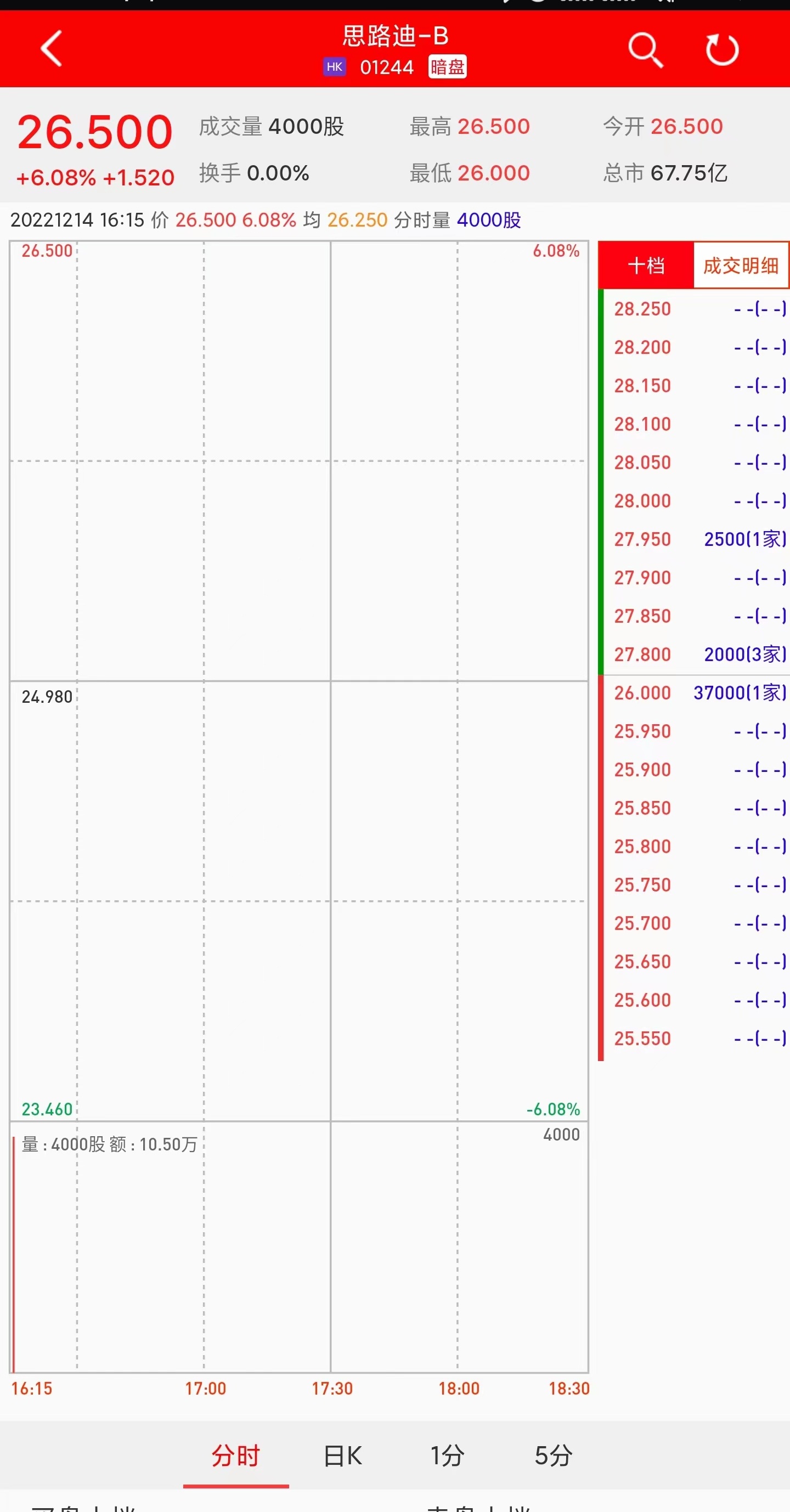 智通财经APP获悉,3D MEDICINES-B(01244)将于12月15日(周四)在香港挂牌。截至发稿,利弗莫尔证券暗盘交易显示报价26.5港元,较招股价24.98港元涨6.08%。每手500股,不计手续费,每手赚760港元。