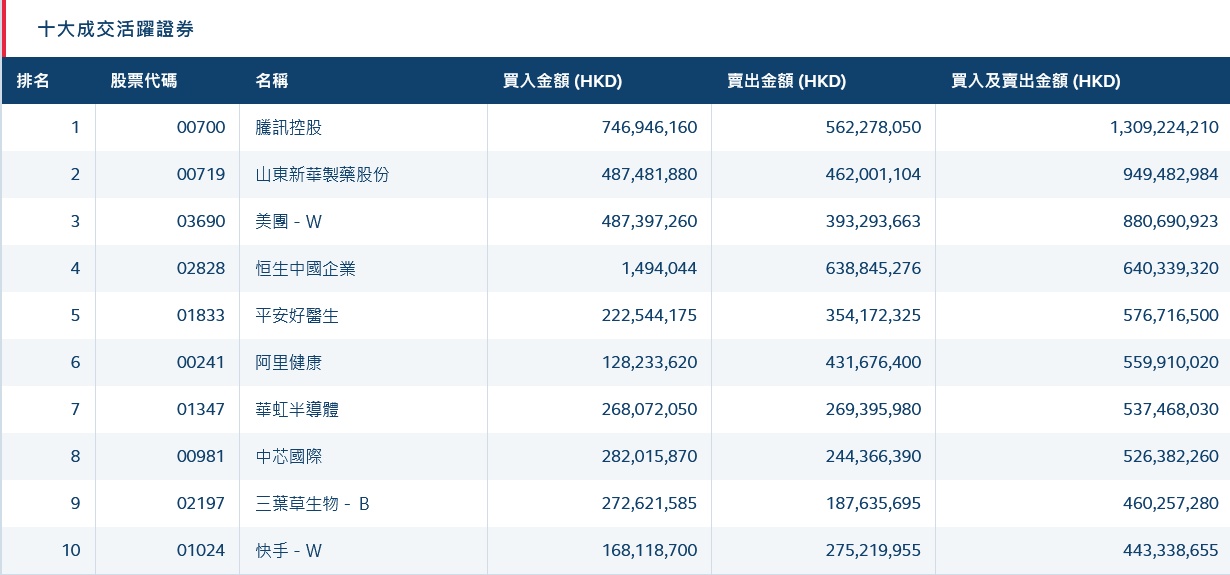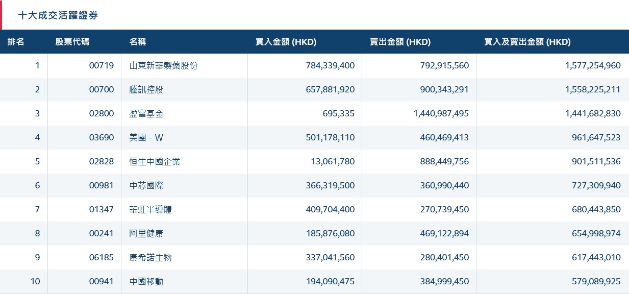 此外,腾讯(00700)、中国移动(00941)、阿里健康(00241)分别遭净卖出5779万、1.9亿、5.86亿港元。港股ETF方面,恒生中国企业(02828)、盈富基金(02800)分别遭净卖出15.12亿、14.4亿港元。