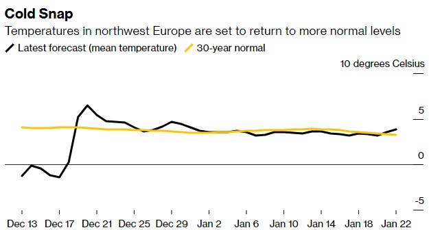 智通财经APP获悉,欧洲天然气价格下跌,因为西北欧未来几天气温预计将升至正常水平。周三,基准天然气期货价格一度下跌4%,此前一天曾小幅走高。下个月的气温预计将徘徊在30年来的平均水平附近。风力发电水平预计也将在下周回升,从而缓解天然气原料供应的压力。截至发稿,荷兰近月天然气期货价格下跌2.8%,至133.7欧元/兆瓦时。