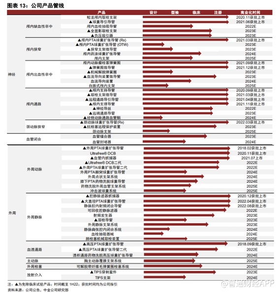 智通财经APP了解到,归创通桥是神经和外周血管介入手术器械的领先国产厂家,前身浙江归创由赵中博士于2012年注册成立,主要业务为外周介入产品。2018年股权重组后,珠海通桥成为公司全资子公司,该子公司主要业务为神经介入产品。截至2022年6月,公司已拥有神经介入/外周介入较为完整的产品组合,覆盖缺血性脑卒中、出血性脑卒中、下肢动脉狭窄、深静脉血栓、静脉曲张等大部分细分疾病领域,在中国大陆合计拥有55款已获批或在研产品,此外也有8款产品获得CE认证。