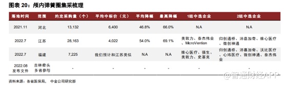 据智通财经APP了解,2021年下半年至今,已有河北、江苏和福建三省先后组织了颅内弹簧圈的集采,平均终端价从河北集采前的1.2-1.3万元分两步降至3500-4800元,并未影响企业出厂价,且国产主要企业陆续中标。此外,2022年8月,吉林省宣布将牵头组织弹簧圈多省联盟集采,有望涵盖除前述三省外的大部分地区。相对温和的集采结果有望加速提升国产替代进程。