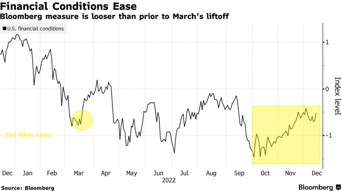 据了解,自从11月2日会议以来,标普500指数截至本周二上涨近7%,是2020年6月以来最佳两次会议期间表现。同时,高盛的一个美国金融状况指数下跌0.8%,是2009年8月以来最大两次会议期间降幅。