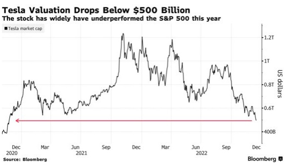 智通财经APP获悉,特斯拉(TSLA.US)股价的持续下跌已推动其估值自2020年11月以来首次收于5000亿美元大关以下,于周三美股收盘下跌2.6%至156.80美元,市值达到4950亿美元,今年以来的跌幅达到55%。特斯拉本身运营的问题,包括供应短缺、原材料成本飙升和生产中断,以及马斯克收购推特,都对该股造成了沉重压力。由于市值下滑,马斯克已不再为世界首富。
