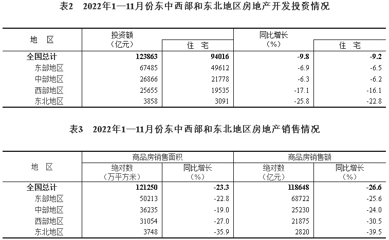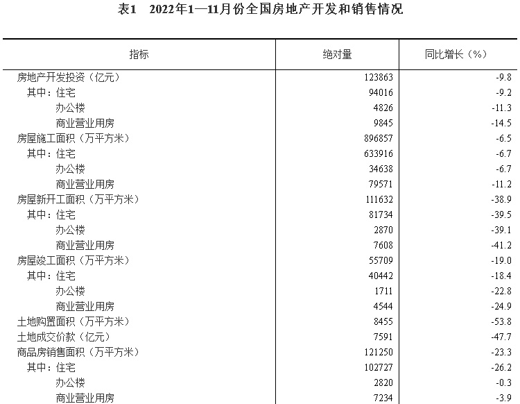 2022年1—11月份全国房地产开发投资下降9.8%
