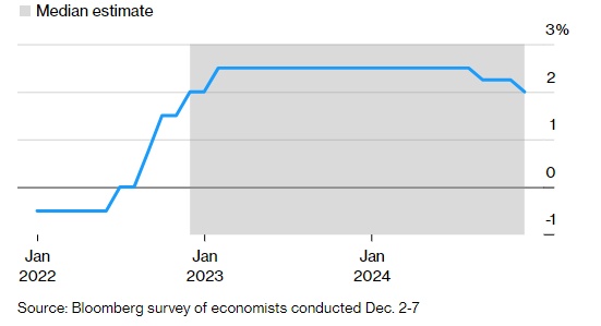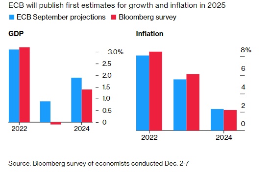 同样值得关注的是欧元区明年的经济是否会收缩。有分析师预计,该地区的经济将萎缩0.1%。
