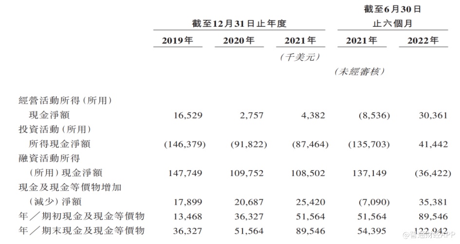 特海国际餐厅经营数据,一定程度反映了公司总体经营活动所得现金下滑的原因。2019年至2021年,公司经营活动所得现金净额分别为1652.9万美元、275.7万美元、438.2万美元,而同期投资活动所用现金净额均高于8700万美元,公司每年经营和门店扩张需要上亿美元的融资加持。