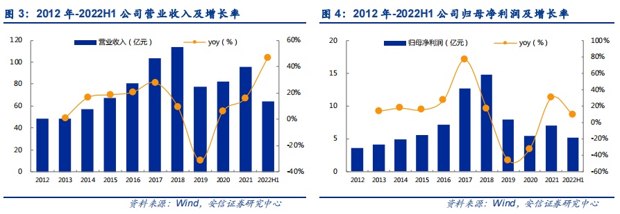 拆分收入结构来看,长飞光纤光缆的收入主要来源于光纤、光缆及光纤预制棒。2022H1,公司来源于光纤及光纤预制棒、光缆,以及其他产品的收入分别为18.81亿元、29.18亿元、15.45亿元,同比分别增加了39.6%、56.2%、40.8%,对应收入比重分别为29.4%、45.7%、24.2%。