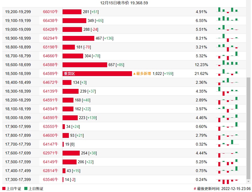 牛证街货重货区在18500-18599区间,该区间最新牛证数量为1022张,较上一交易日增加159张;最多新增在同一区间。