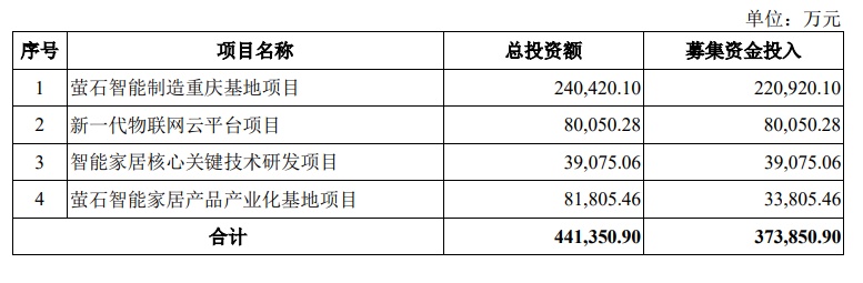 招股书显示,萤石网络此次募集资金扣除发行费用后拟用于以下列项目: