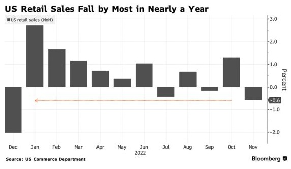 美国11月份零售额出现近一年来最大降幅,反映出通胀压力和消费转向服务。受借贷成本上升和需求疲软的拖累,周四公布的几项制造业指标显示制造业数据出现萎缩。