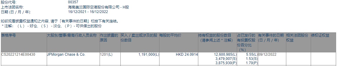 智通财经APP获悉,香港联交所最新资料显示,12月09日,小摩减持美兰空港(00357)119.1万股,每股作价24.0914港元,总金额约为2869.29万港元。减持后最新持股数目为1260.1万股,最新持股比例为5.55%。
