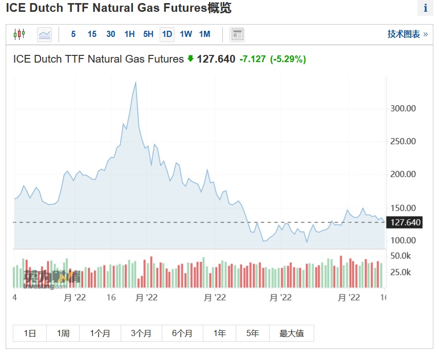 智通财经APP获悉,由于充足的液化天然气供应和高储存水平缓冲了冬季寒冷的影响,欧洲天然气价格走低。截至发稿,基准荷兰TTF天然气期货价格跌5.29%,报127.64欧元/兆瓦时。欧洲天然气也有望在连涨四周之后于本周迎来周度下跌。