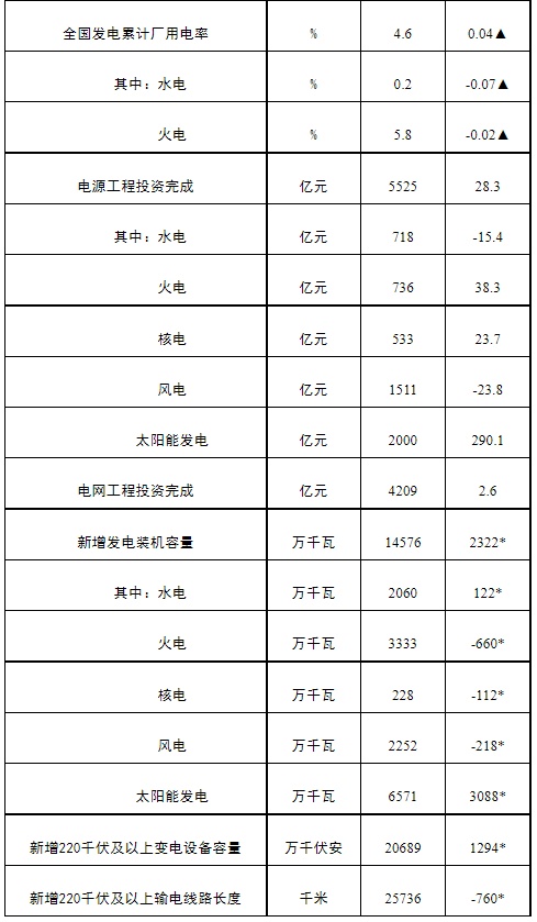 1-11月份,全国主要发电企业电源工程完成投资5525亿元,同比增长28.3%。其中,太阳能发电2000亿元,同比增长290.1%。电网工程完成投资4209亿元,同比增长2.6%。