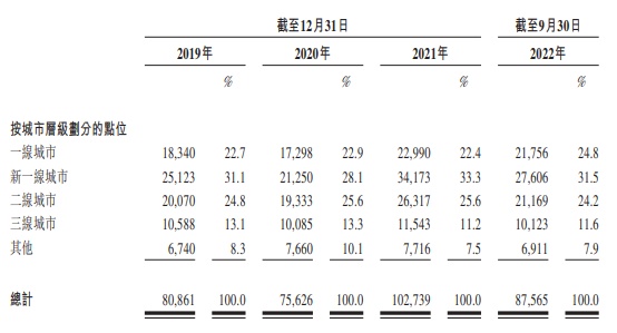 截至2022年9月30日,友宝在线的点位网络有 87,565个点位,由69,963个自动售货机友宝点位及17,602个附属点位组成,遍布中国大陆288个城市及31个省级行政区,其中有80.5%集中于一线、新一线及二线城市。