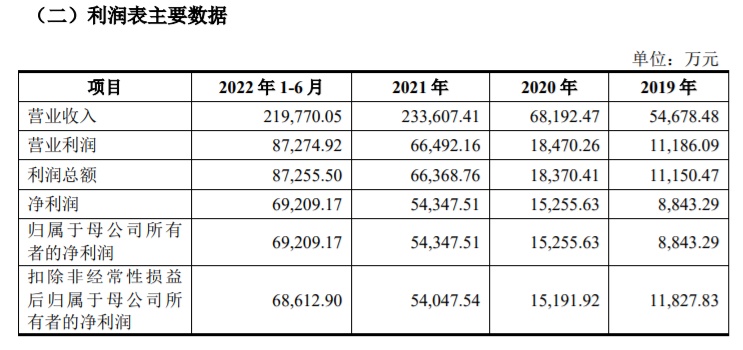 财务方面,于2019年度、2020年度、2021年度及2022年上半年,尚太科技实现营业收入分别约为5.47亿元、6.82亿元、23.36亿元及21.98亿元人民币;归属于母公司所有者的净利润分别约为8843.29万元、1.53亿元、5.43亿元及6.92亿元人民币。