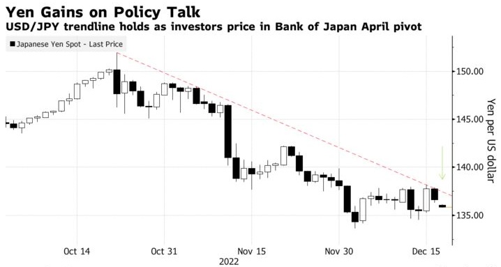 智通财经APP获悉,上周六,媒体报道称,日本首相岸田文雄计划修改与日本央行达成的一项10年协议,将首次修改为实现稳定的经济增长规定政府和央行职责的联合声明。关于声明中提出“尽快实现”的2%通胀目标,将以更加灵活为方向展开探讨,此后日元本周开盘走高。日元周一早间一度上涨0.6%,至1美元兑135.79日元。报道称,岸田文雄将于4月接替黑田东彦的下一任日本央行行长讨论此事。如果这些预测得到证实,这将与岸田文雄6月份的言论形成鲜明对比,当时岸田文雄表示,他预计日本央行将坚持2%的通胀目标。