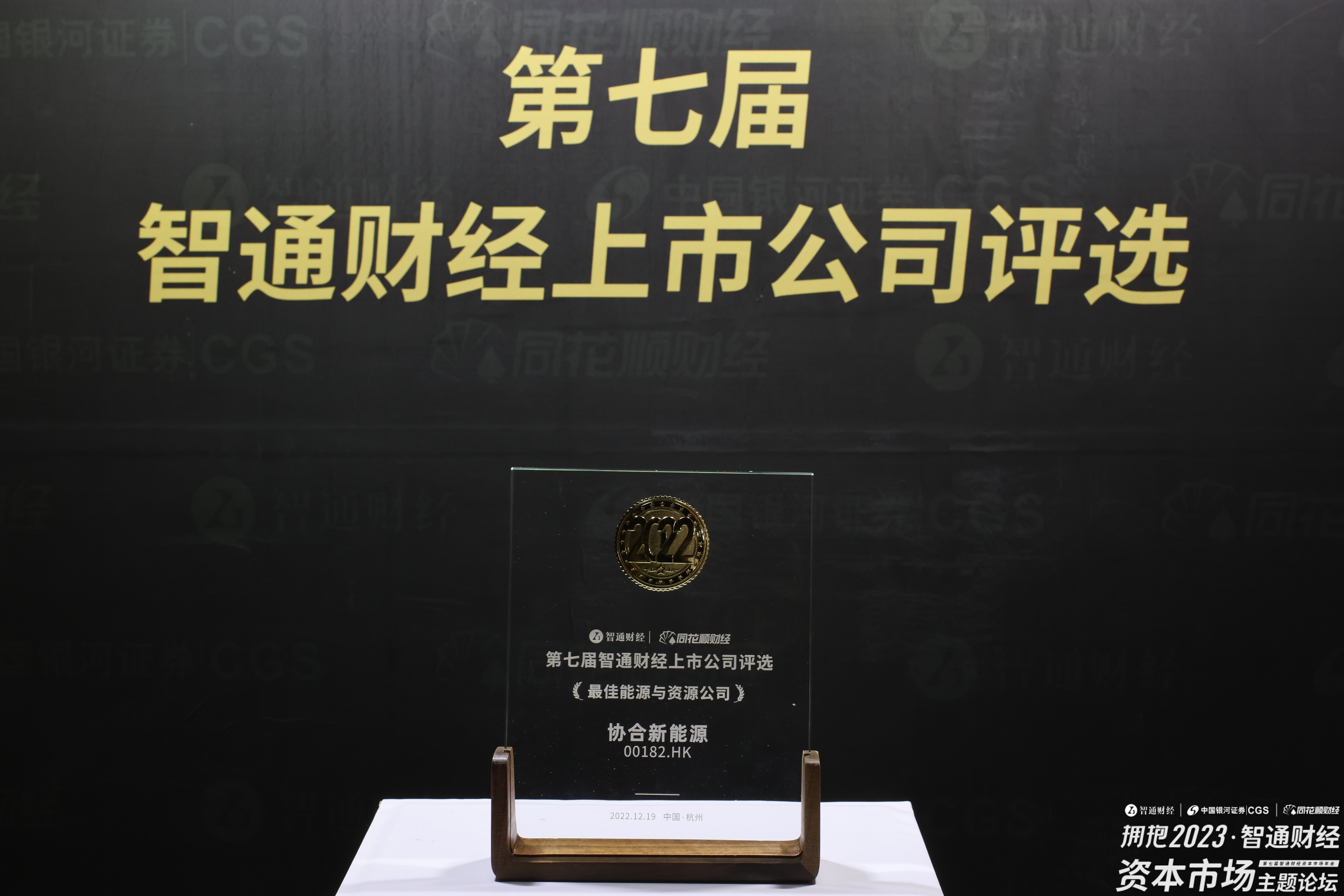 2022年12月19日上午12点,在杭州举办的“第七届智通财经上市公司评选”上,协合新能源(00182)荣获“最佳能源与资源公司”大奖。