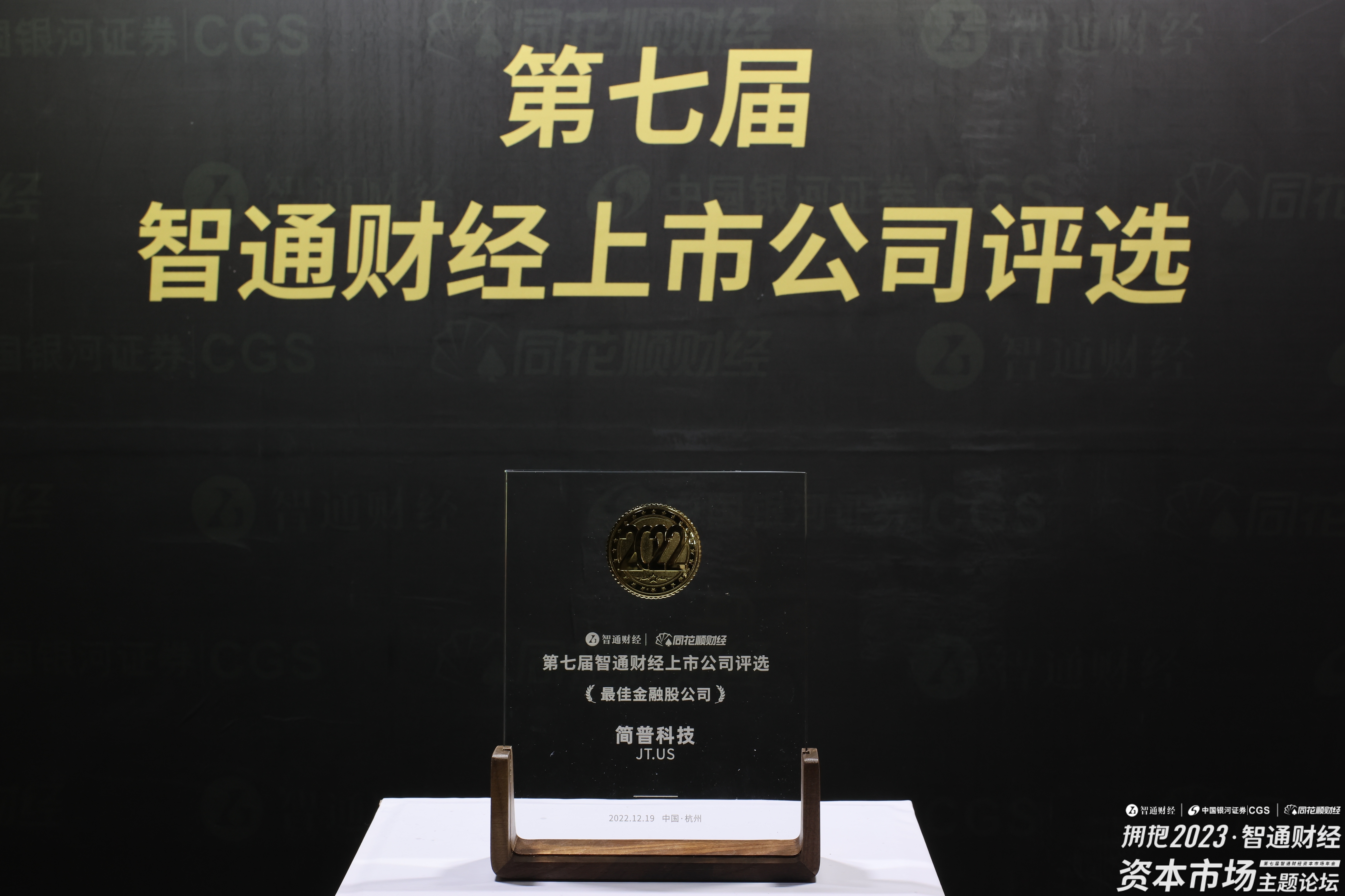 2022年12月19日上午12点,在杭州举办的“第七届智通财经上市公司评选”上,简普科技(JT.US)荣获“最佳金融公司”大奖。