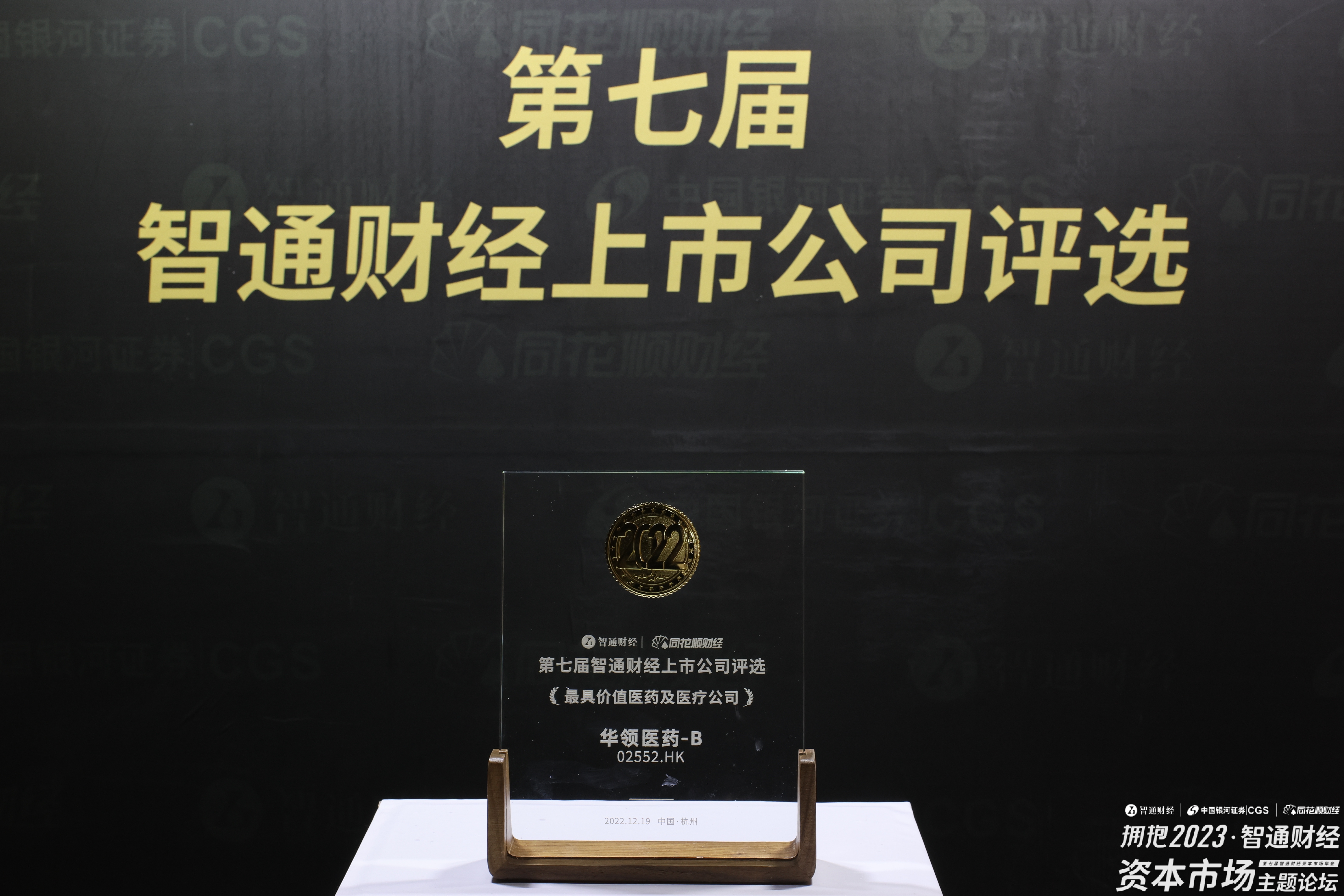 2022年12月19日上午12点,在杭州举办的“第七届智通财经上市公司评选”上,华领医药-B(02552)荣获“最具价值医药及医疗公司”大奖。