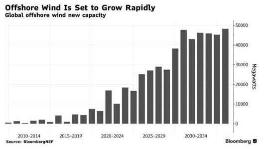 据悉,澳大利亚在发展海上风电行业以取代一批仍为其提供大部分能源的的老化燃煤电厂方面一直进展缓慢。但在5月当选的工党政府领导下,这一行动加快了步伐。据分析称,到2035年,全球装机将增长10倍,澳大利亚的优质资源将与公用事业规模的太阳能互补,从而创造价值。