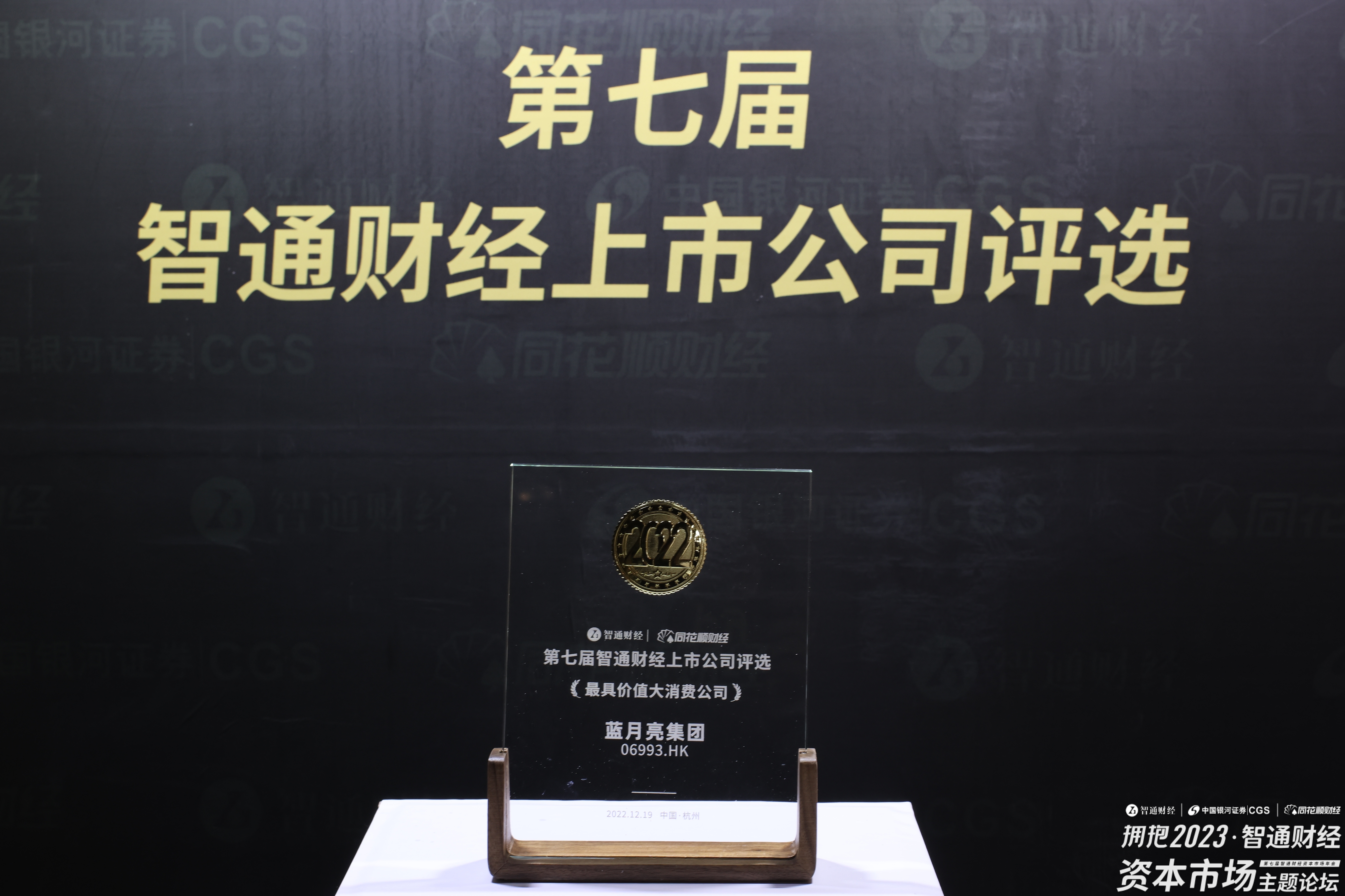 2022年12月19日上午12点,在杭州举办的“第七届智通财经上市公司评选”上,蓝月亮集团(06993)荣获“最具价值大消费公司”大奖