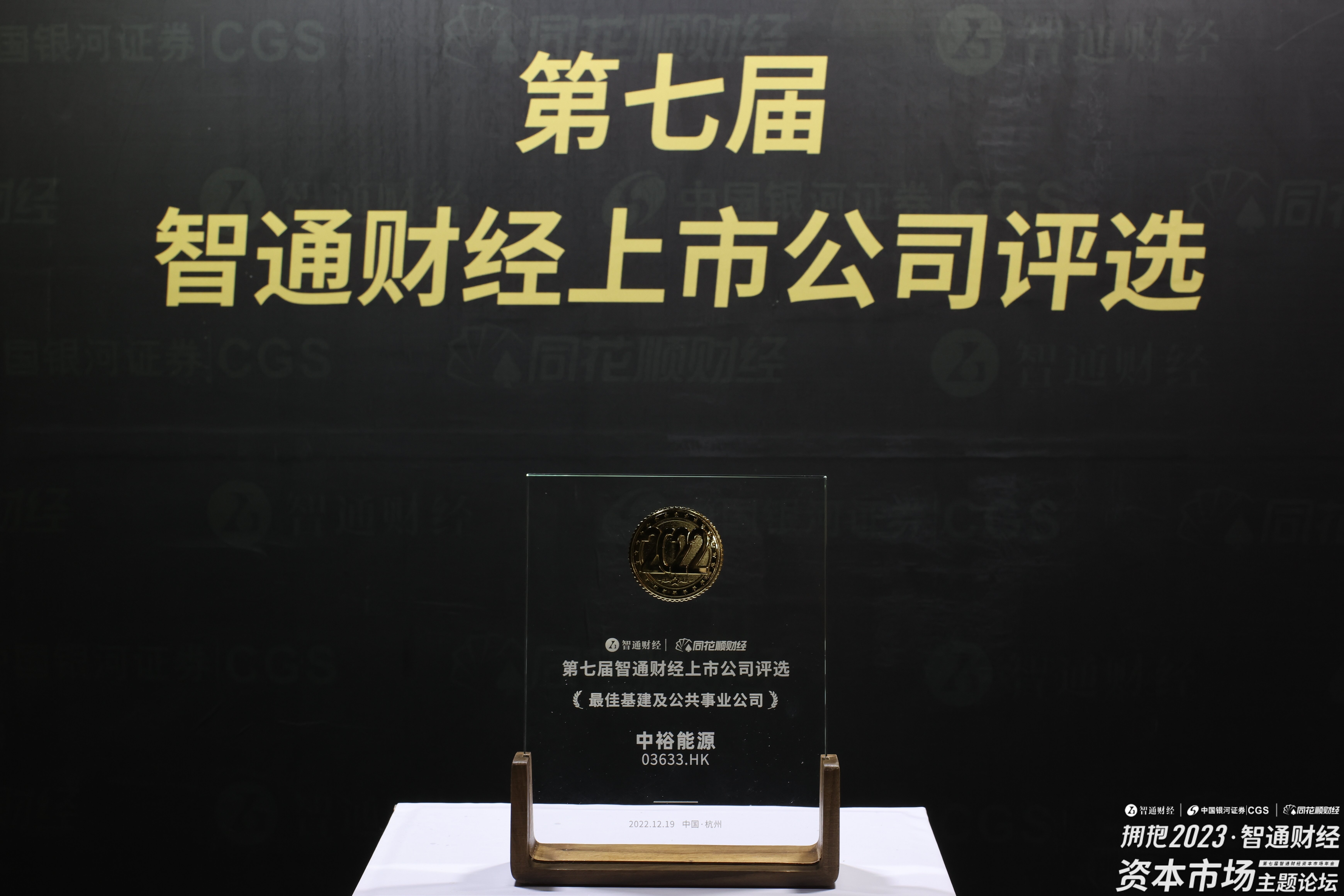 2022年12月19日上午12点,在杭州举办的“第七届智通财经上市公司评选”上,中裕能源(03633)荣获“最佳基建及公共事业公司”大奖。