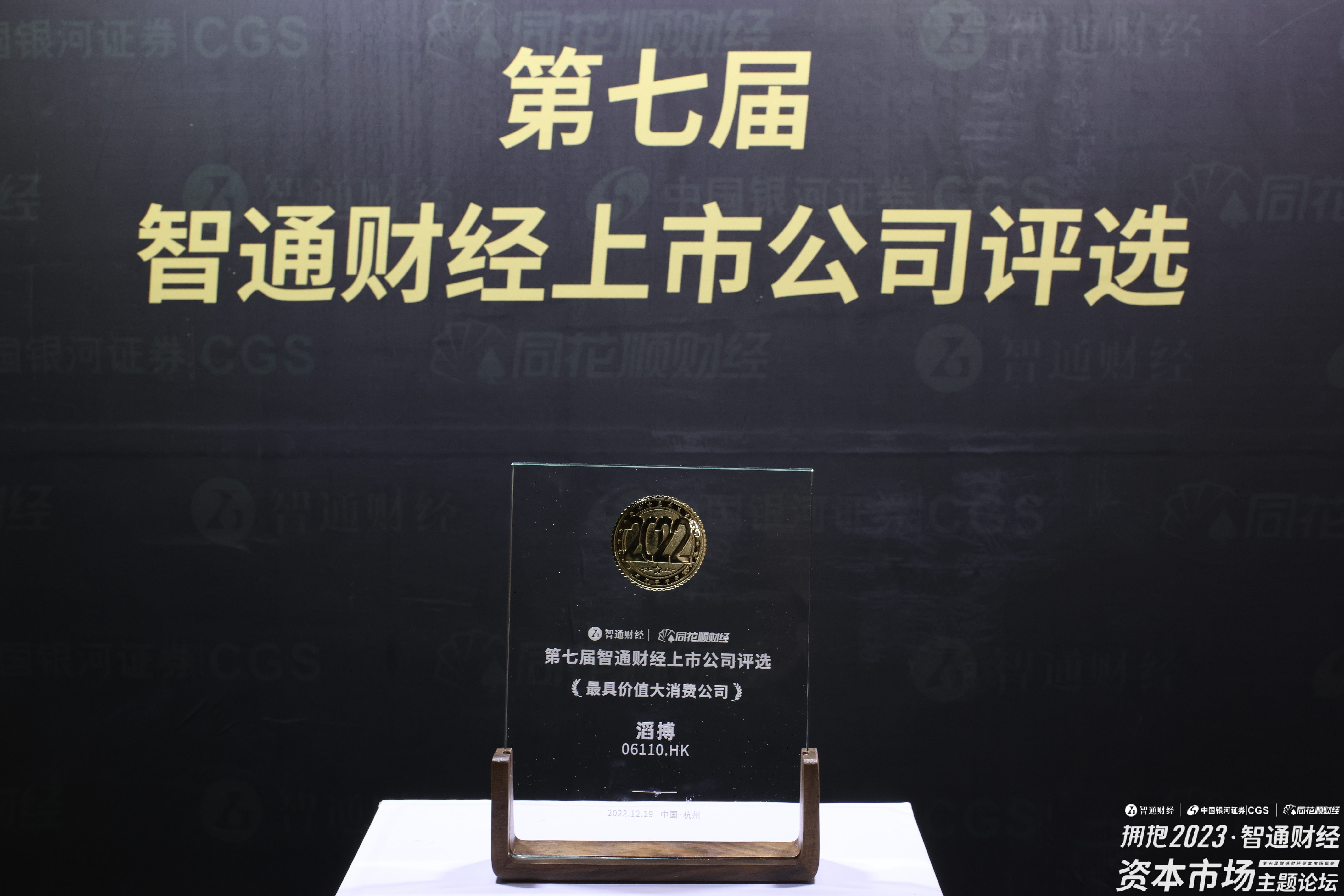 2022年12月19日上午12点,在杭州举办的“第七届智通财经上市公司评选”上,滔搏(06110)荣获“最具价值大消费公司”大奖