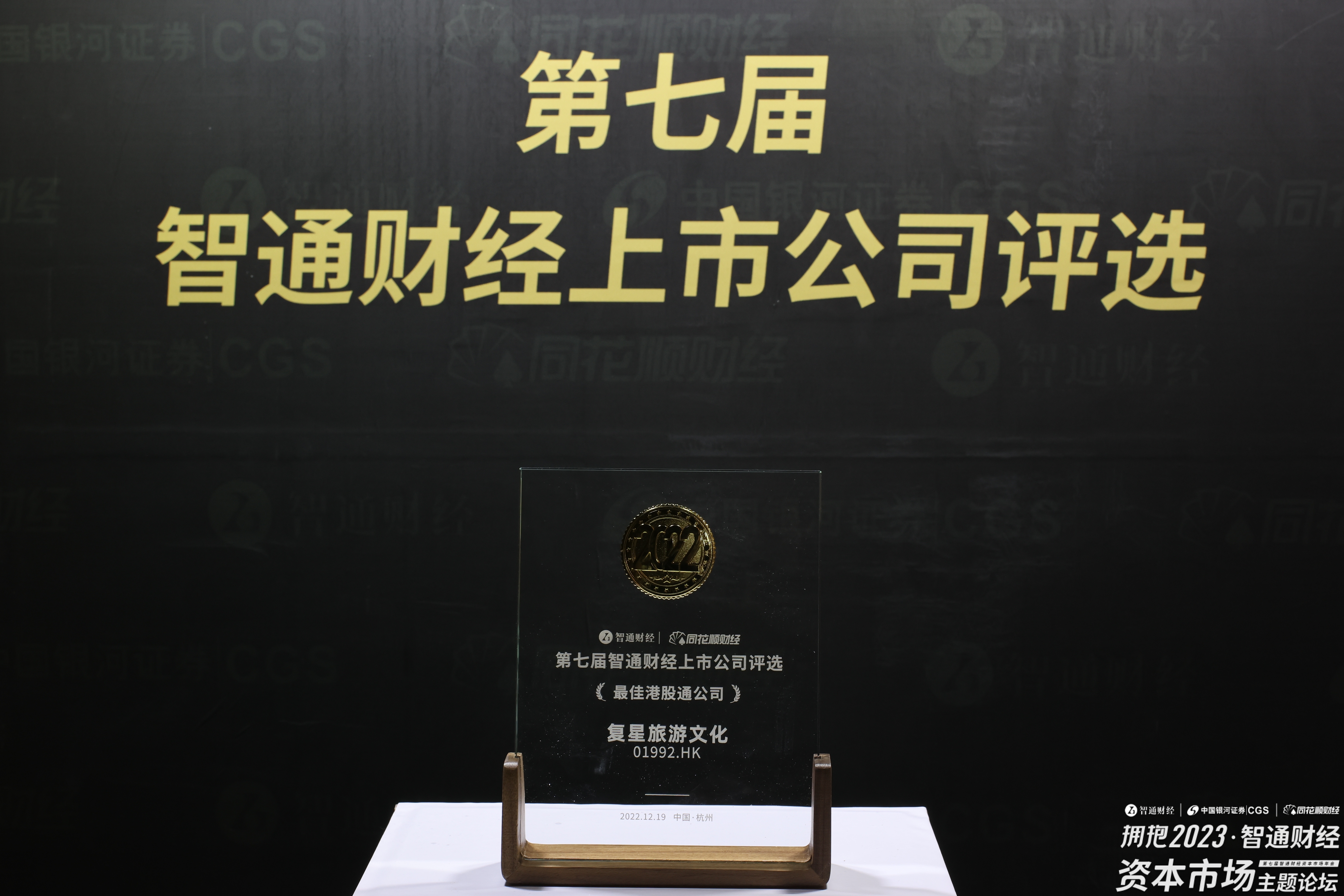 2022年12月19日上午12点,在杭州举办的“第七届智通财经上市公司评选”上,复星旅游文化(01992)荣获“最佳港股通公司”大奖。
