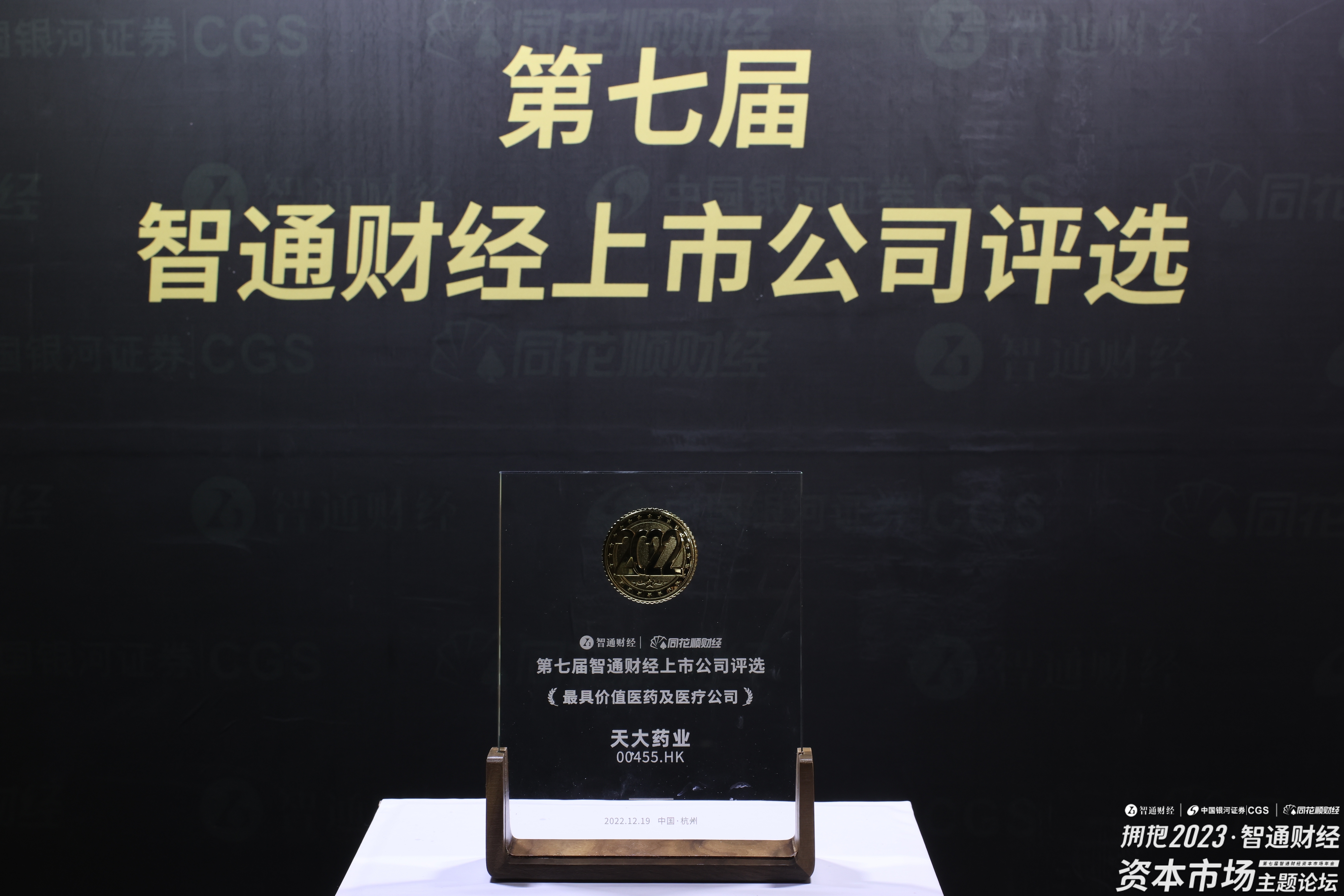 2022年12月19日上午12点,在杭州举办的“第七届智通财经上市公司评选”上,天大药业(00455)荣获“最具价值医药及医疗公司”大奖。