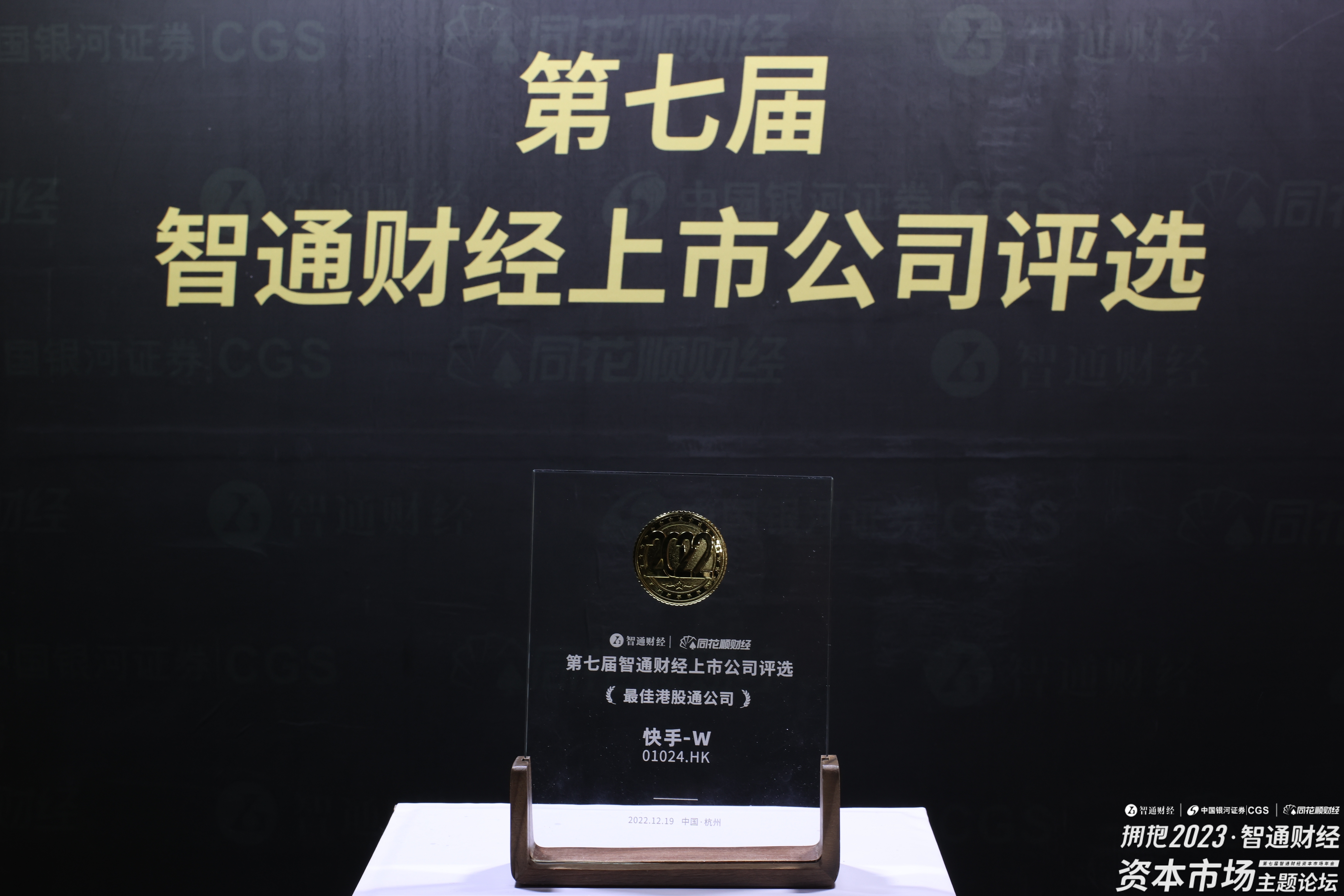 2022年12月19日上午12点,在杭州举办的“第七届智通财经上市公司评选”上,快手-W(01024)荣获“最佳港股通公司”大奖。